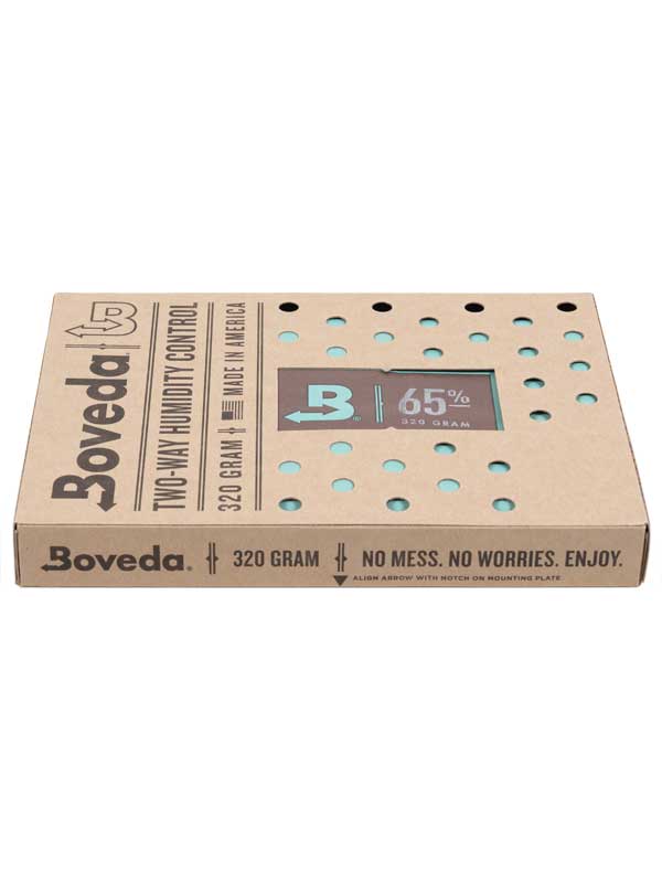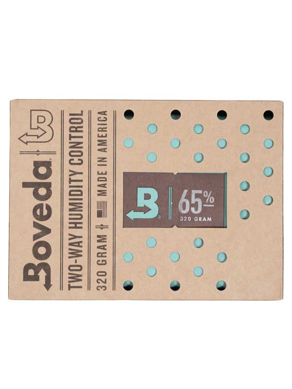 Boveda’s patented 2-way humidity control continually responds to ambient conditions by adding or removing moisture to affect the enclosed environment and deliver the pre-determined RH (relative humidity) level printed on the pack (which in this case is 65%).
