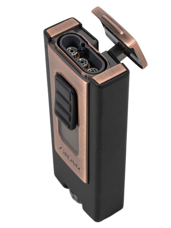 The Xikar Trezo stands as the world’s first and only in-line triple-flame lighter, reaffirming Xikar’s reputation as a true innovator in luxury cigar accessories. Its unique design features two angled torch flames converging toward a central flame, creating an intense heat zone that perfectly toasts your cigar with precision and speed. Beyond its striking performance, the Trezo boasts a large-capacity butane tank, an easy-to-read fuel window, and an oversized adjustment wheel, all engineered for effortless control and reliability, even in the wind.