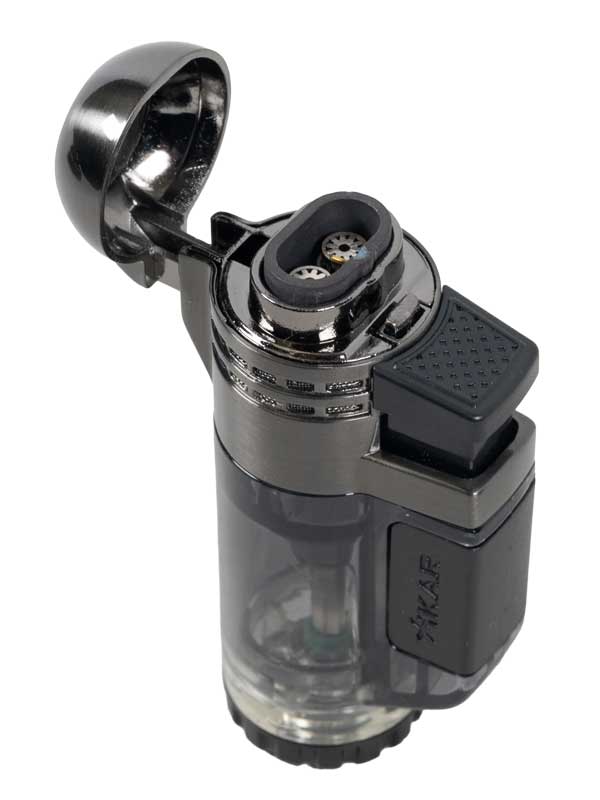 The Tech Lighter is built with a large-capacity fuel tank, a powerful dual-jet flame, and a rugged design that reflects XIKAR’s commitment to form, feel, and function. Its transparent body pairs sleek style with durable metal construction, all at an accessible price. Perfect for outdoor adventures, or everyday reliability.