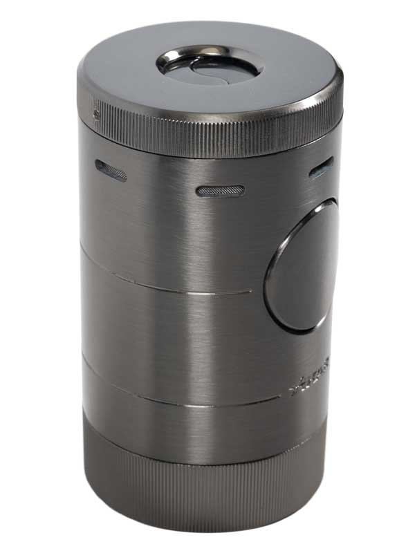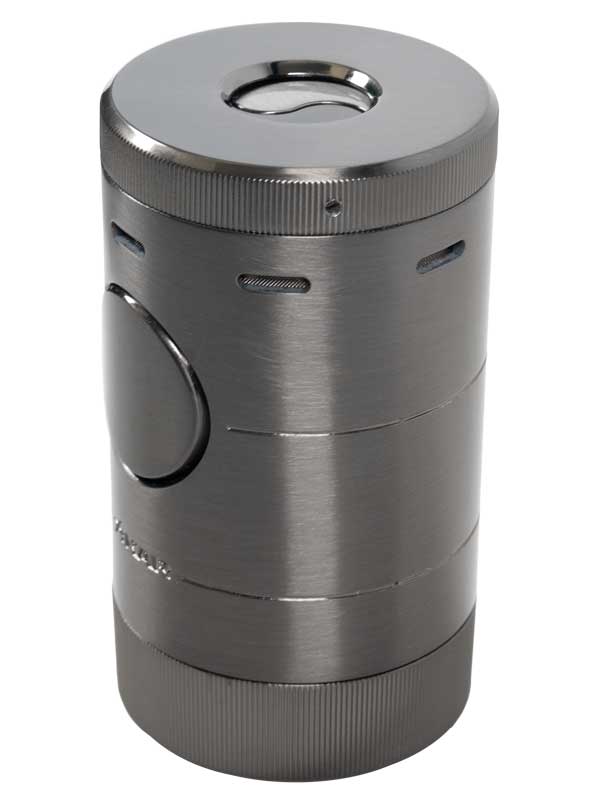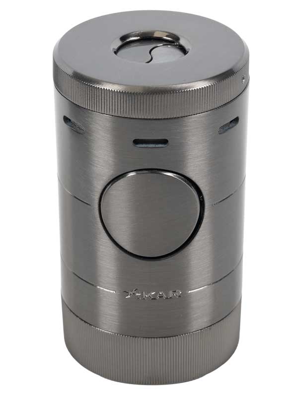 Introducing the Xikar Volta, a bold addition to Xikar’s lineup of high-performance table lighters. Engineered with a powerful quad flame, the Volta combines precision and style in every detail. Its flush, oversized ignition button blends seamlessly with the sleek cylindrical body, creating a modern, refined look. A ratcheting adjustment wheel offers effortless flame control, while the red-tinted fuel gauge ensures easy visibility. Topping it off, a camera aperture–inspired lid protects the burners with a touch of mechanical elegance.