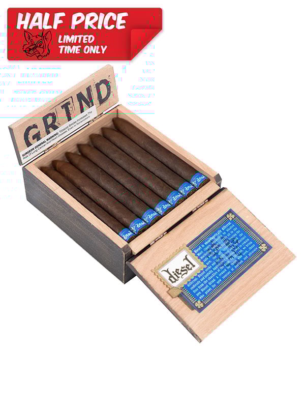 The Diesel Grind is a full-bodied cigar that is blended by the mastermind AJ Fernandez. Featuring Nicaraguan binder and fillers with a Habano wrapper, it is equal parts strong and smooth. Try these bad boys!