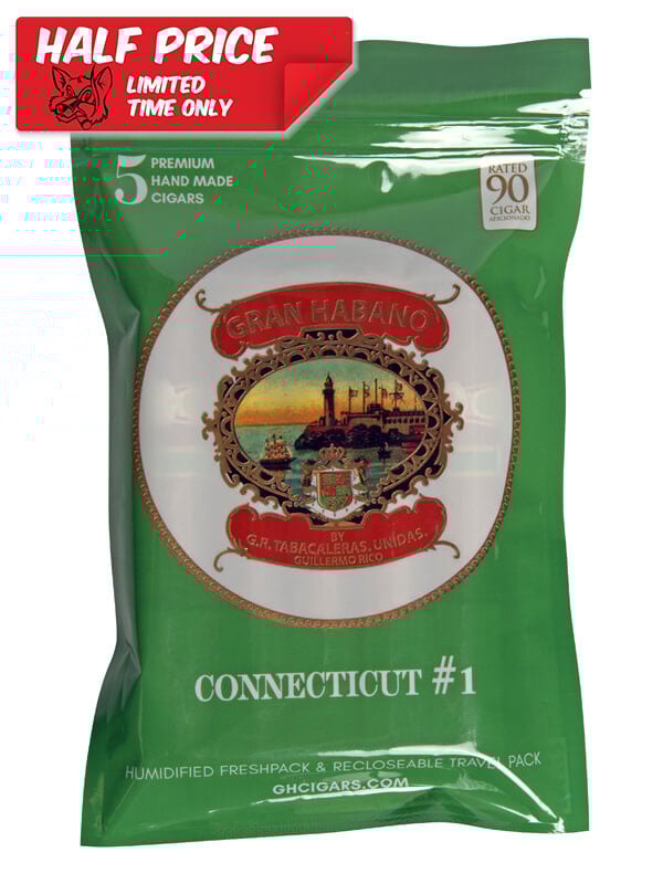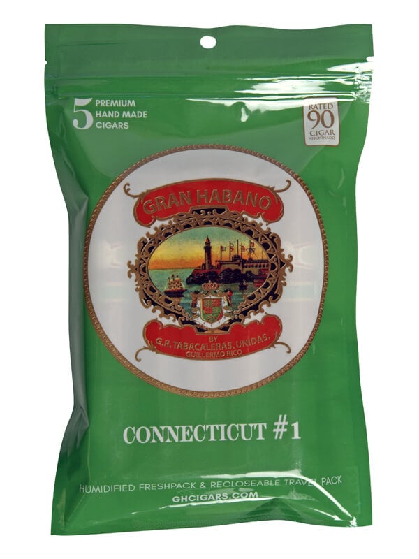 The Gran Habano Connecticut #1 Gran Robusto Fresh Pack features five mild to medium body cigar that features an Ecuadorian Connecticut wrapper, Nicaraguan binder and fillers from Nicaragua. The #1 opens up with a deep woody flavor profile, delivers a very clean smoke and finishes with a light spice.