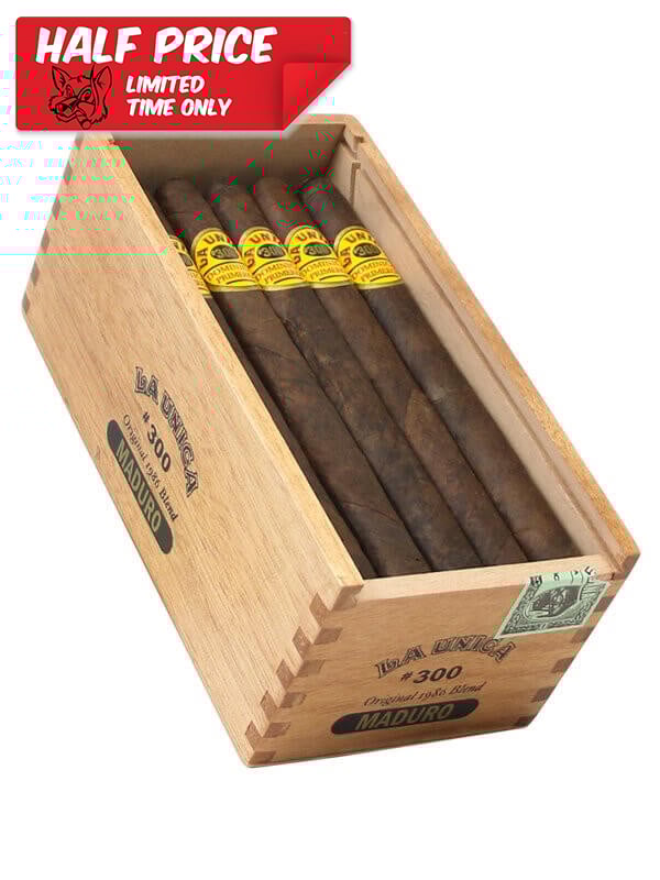 The La Unica No. 300 Maduro cigar is covered in a naturally sweet Connecticut Broadleaf Maduro wrapper that gives you an uninterrupted mellow to medium-bodied smoke in a delicious Toro size. Without a doubt, this is a cigar you want to add to your humidor rotation.