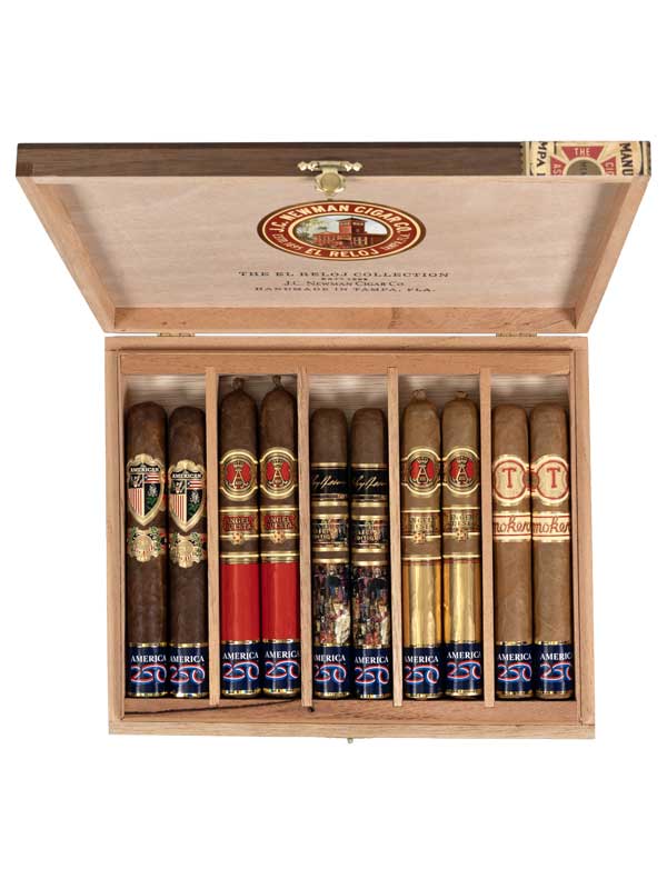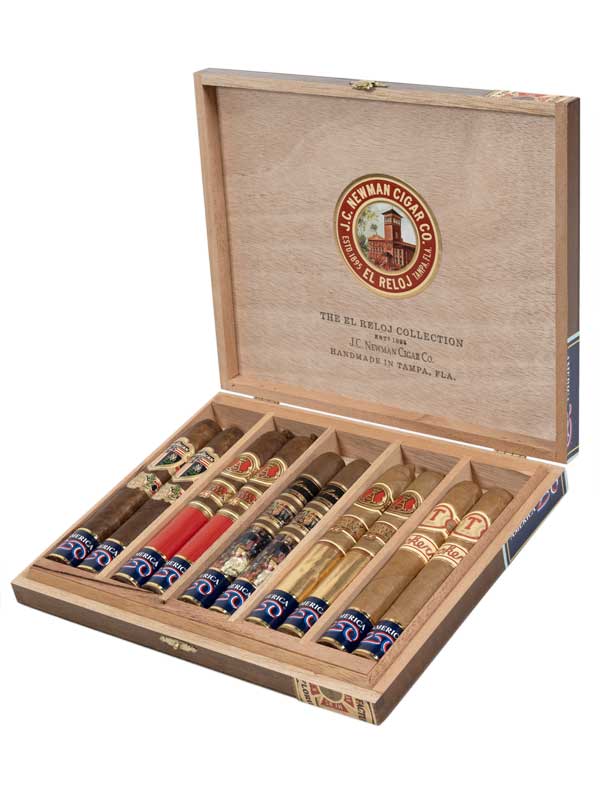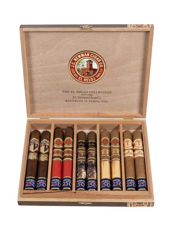 The J.C. Newman El Reloj Collection is a celebration of American cigar history, craftsmanship, and pride. This exclusive box set features ten luxury cigars, all handcrafted in J.C. Newman’s legendary El Reloj cigar factory in the heart of Tampa, Florida, a city known around the world as Cigar City.